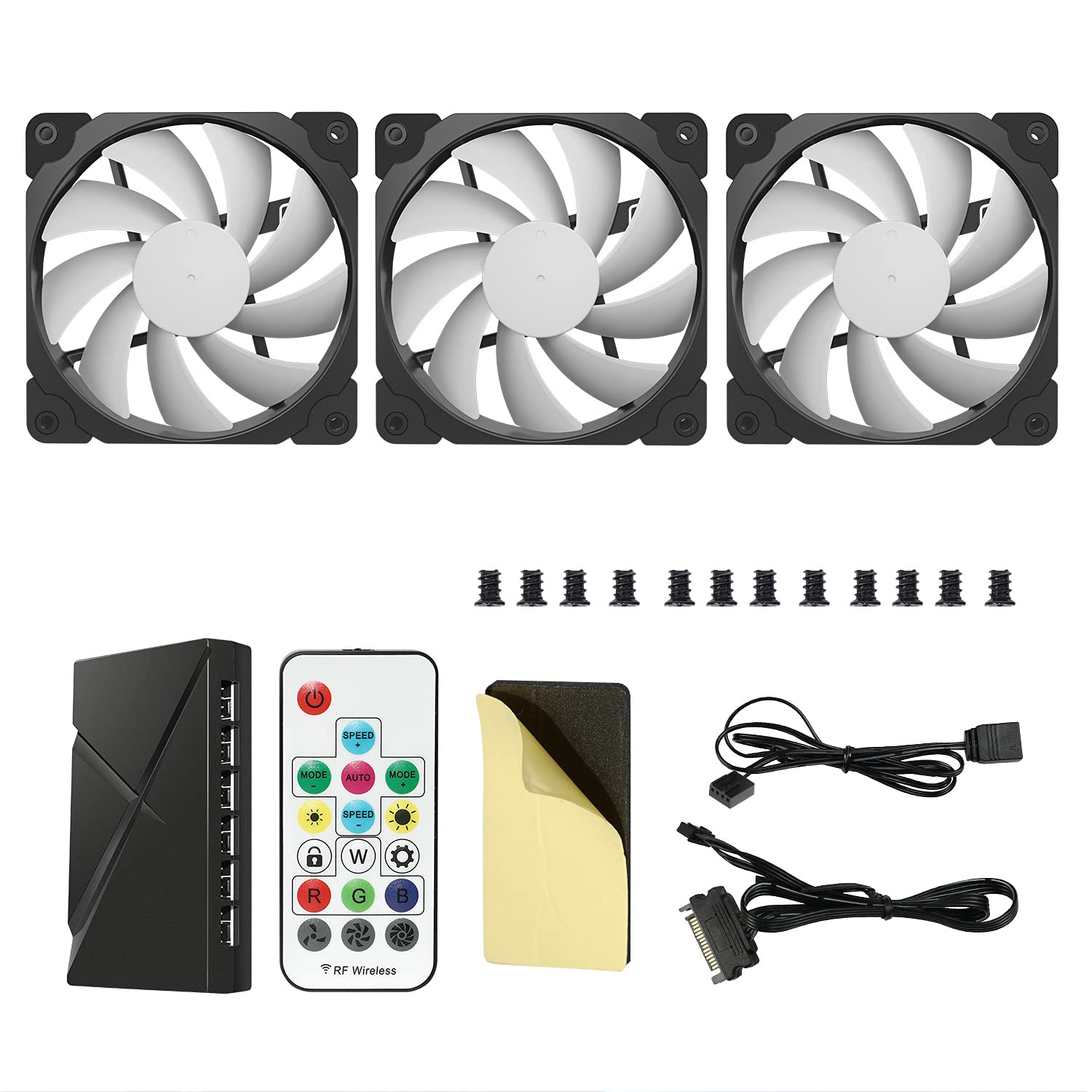Vetroo 3 Pack 120mm ARGB & PWM Case Fans with Controller High Airflow Addressable RGB Motherboard Sync Computer PC Cooling Fans